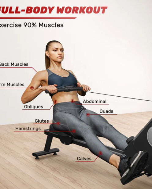 Unique Shock Absorber & Double Sliders – The shock absorber in between is aimed to reduce the pressure and distribute impact. Its double aluminum slider brings the most quiet rowing machine ever. Cannot be more suitable for home use.