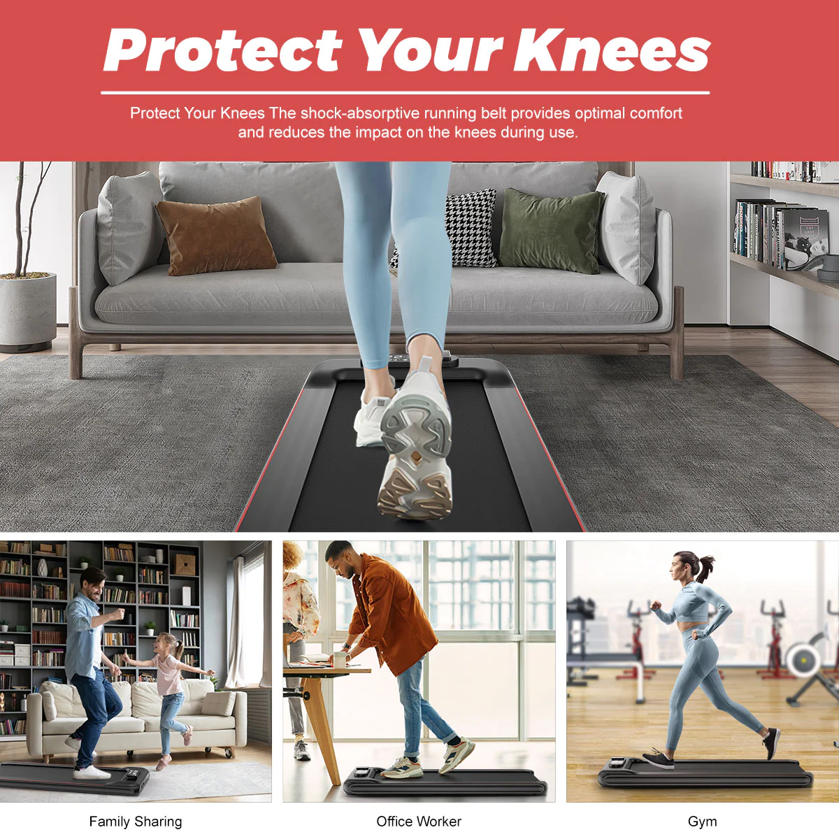 This walking pad is well-made: Comfortable running belt, Slim design, Strong and Durable. It has an excellent appearance design, features shock absorption, with a powerful motor to ensure quiet movement. Feel like walking faster? This walking treadmill maxes out at 8 kilometers per hour and can be used for light jogging.